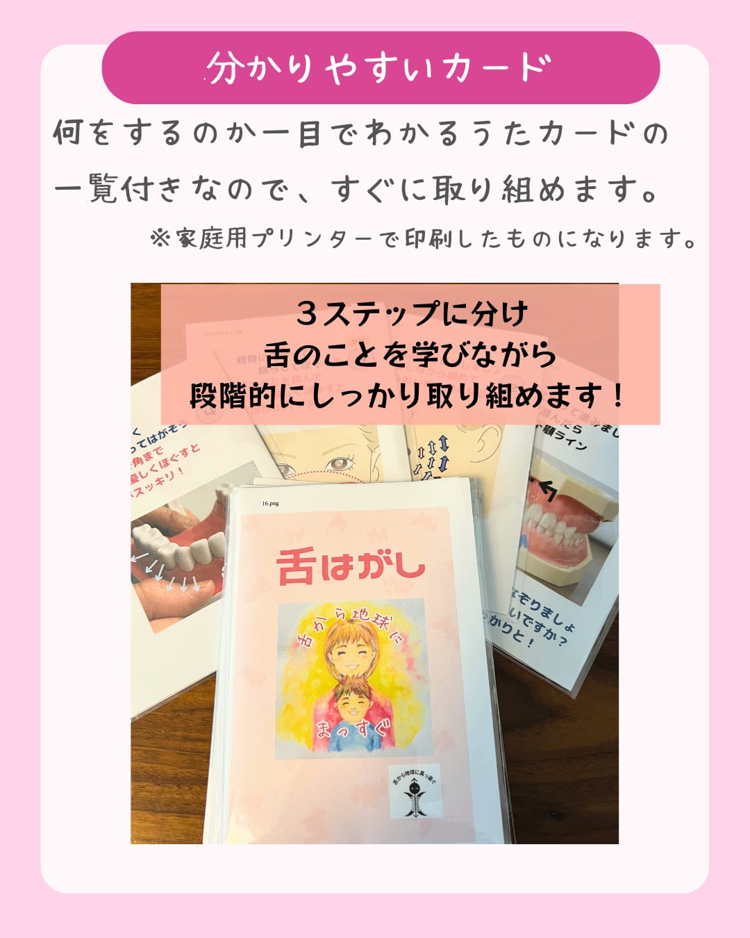 うたカードと動画で「舌はがし」が分かりやすく、楽しく学べます♪